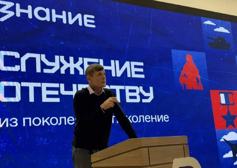 Он выступил по теме «Служу Отечеству» и рассказал о ценностях патриотизма и роли наставника в воспитании молодого поколения.